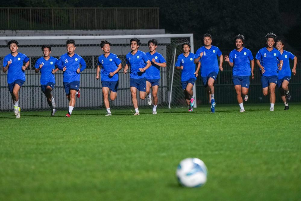 ↑5月29日,常州队球员在常州新北区足球训练基地进行训练。