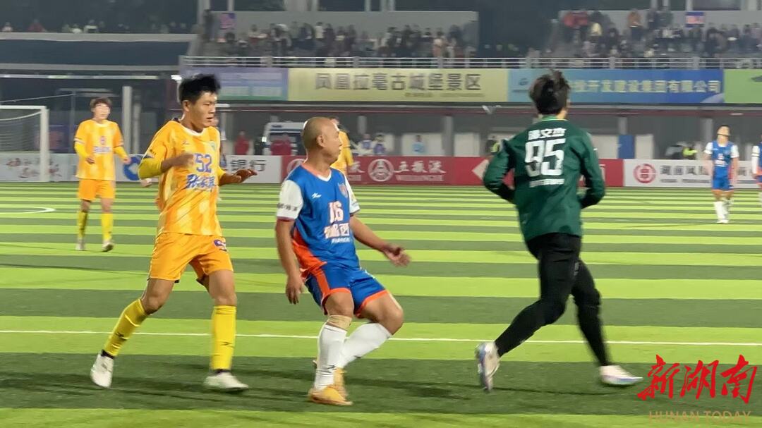 在对战张家界队比赛中,下半场换人,龙进波入场,他锁定对方球员,努力奔跑拼抢,防守在球门前线。观众席上沸腾,球迷齐声高喊:“湘西,雄起!”这喊声,穿越夜色,是对老将最好的褒奖,也是对这支队伍最深情的告白。