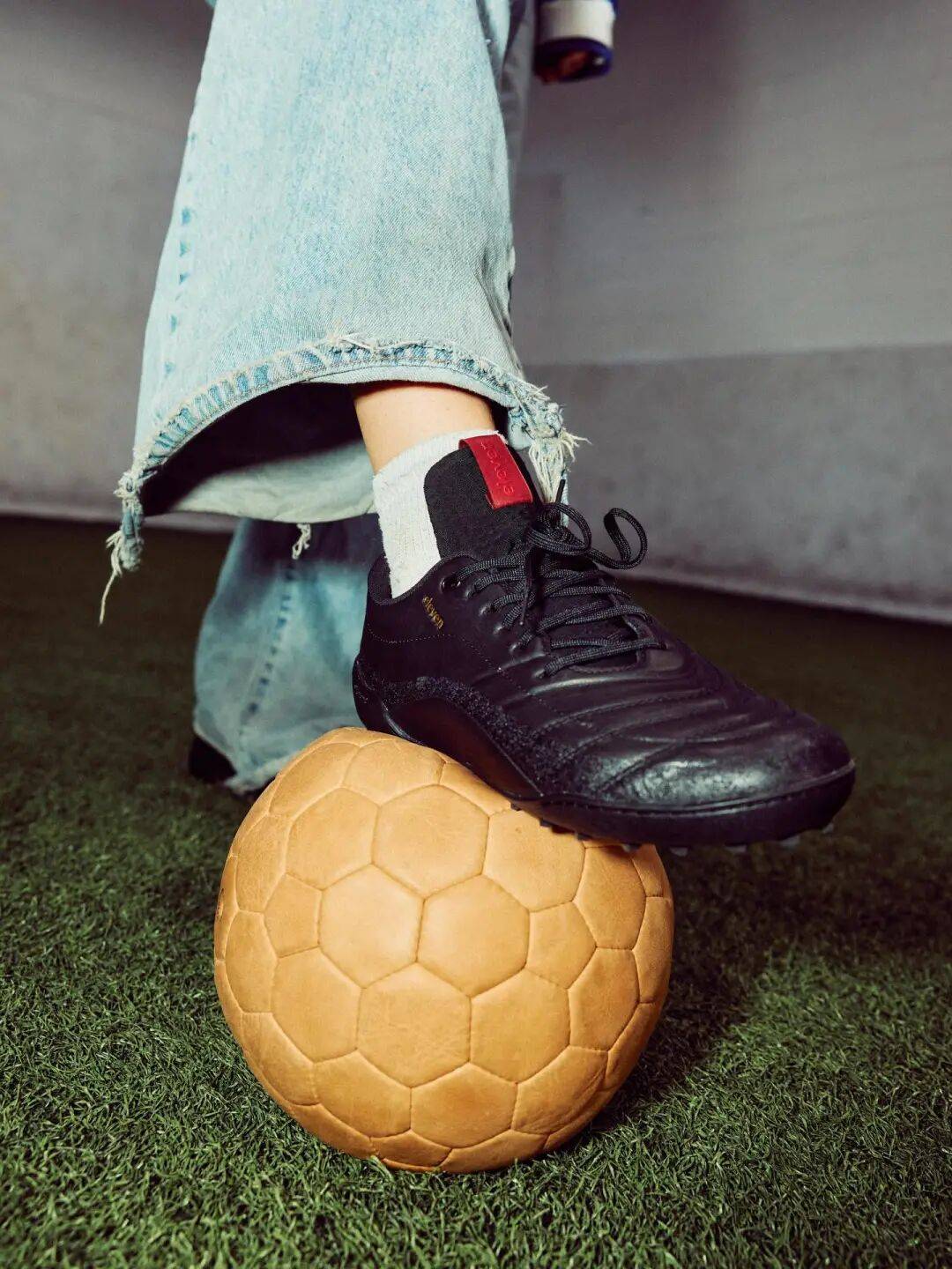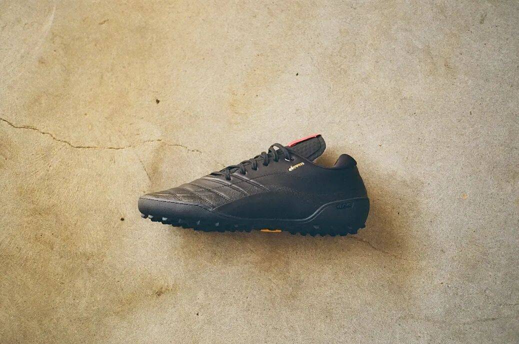 我想没有人会愿意听到鞋钉摩擦地板发出的怪声。除非,有不带长钉且适合日常穿着的足球鞋?还真有。一个来自美国纽约的新晋足球鞋品牌 Eleven,他们的首款产品 TF1 就是一款兼具高端品质与日常舒适性的碎钉足球鞋(Turf Soccer Shoes)。关键是,鞋底采用了 Vibram 橡胶大底。