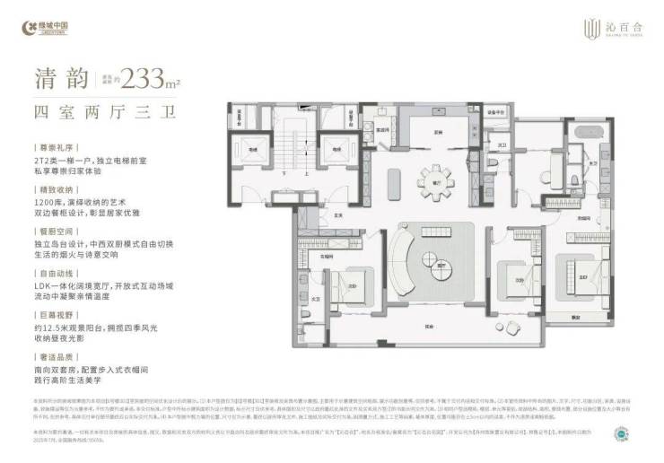 233㎡ 四房两厅三卫:极致宽敞的尺度,承载家族生活的更多可能,是终极改善的梦想户型。